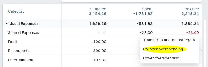 Cover the spending by end-of-month or rollover
